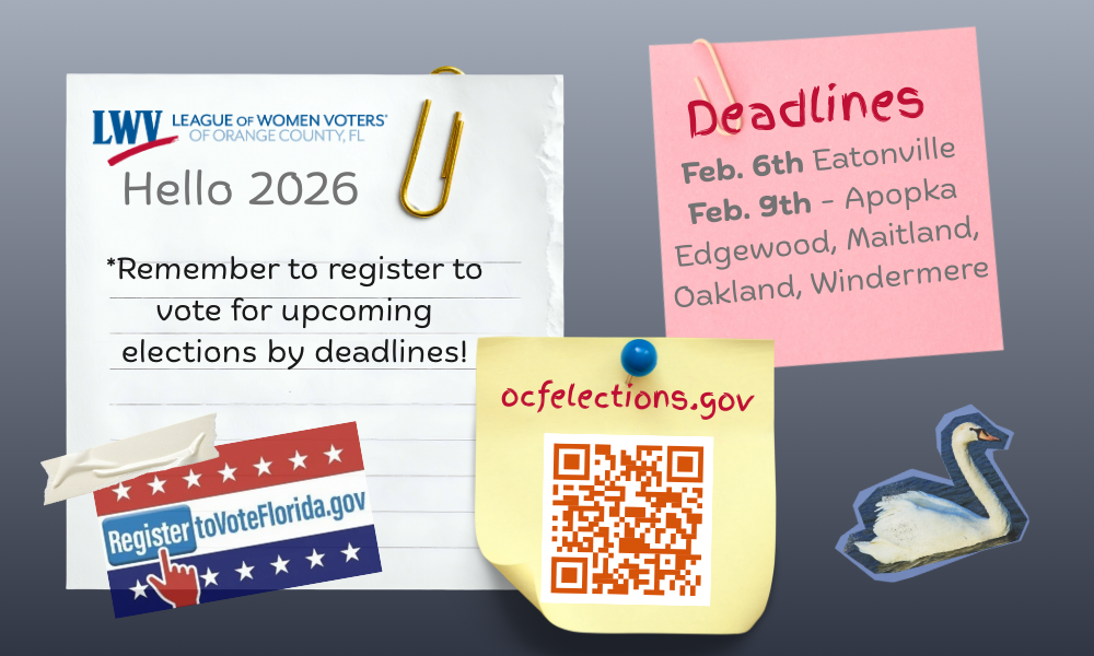 | | Last week, the Rollins College Democracy Project partnered with the LWVOC to conduct a voter registration training event attended by 19 students. (Mary Montanus shown below r. with student) The training focused on the importance of voter engagement and provided participants with guidance on how to register voters accurately and responsibly. Students learned about eligibility requirements, registration procedures, and best practices for nonpartisan voter outreach. The Democracy Project looks forward to applying these practices to events later this semester to promote high voter turnout for the upcoming elections | | Many of you know that this past year we moved to a new membership database through the LWVUS. We learned in December that some of our members may have thought that their membership was up to date but this was actually NOT the case. If you have not renewed recently, please visit the LWVUS portal HERE to confirm your membership is still active. Thank you for your support! We could not do this without you!