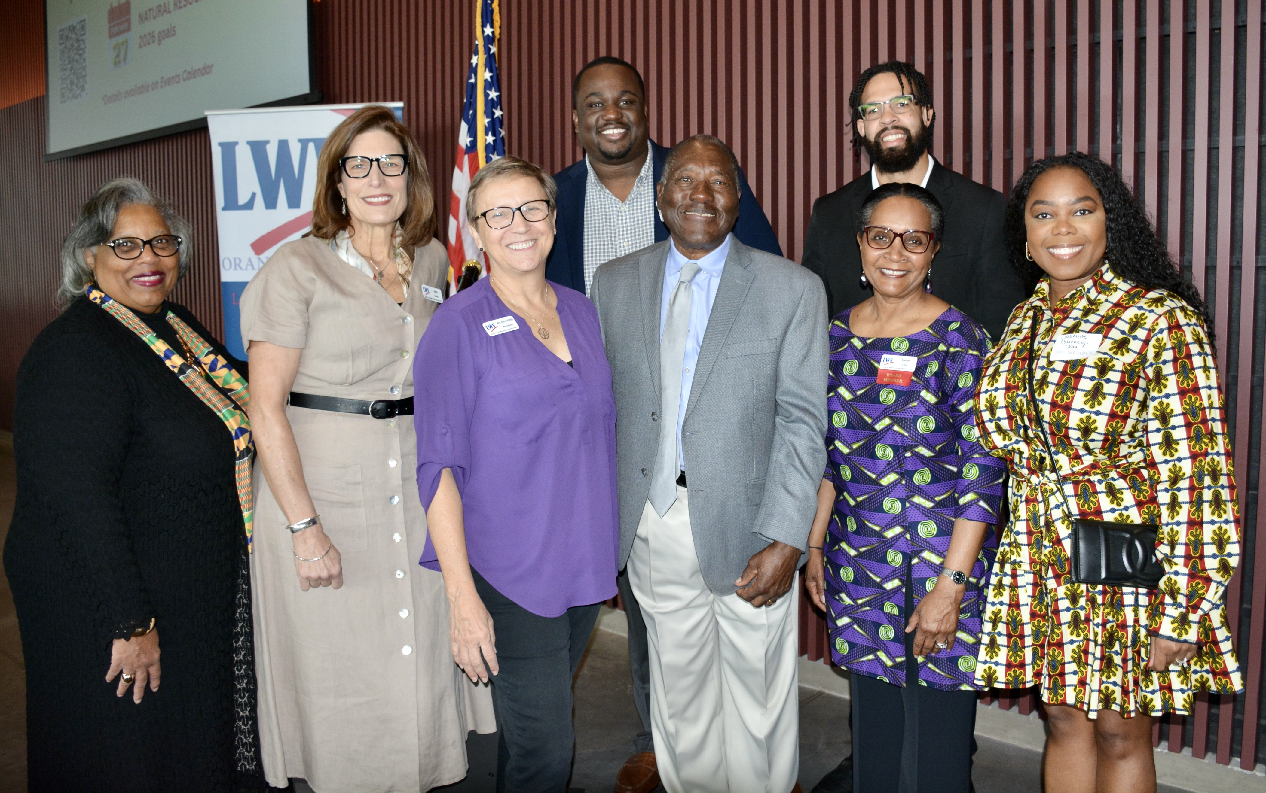 Front row: Co-Pres. Kathy Schmitz, panelist Dr. Marvin Dunn, LWVOC Board Secretary Saudi Ellis, Equal Ground Founder & Senior Advisor Jasmine Burney-Clark