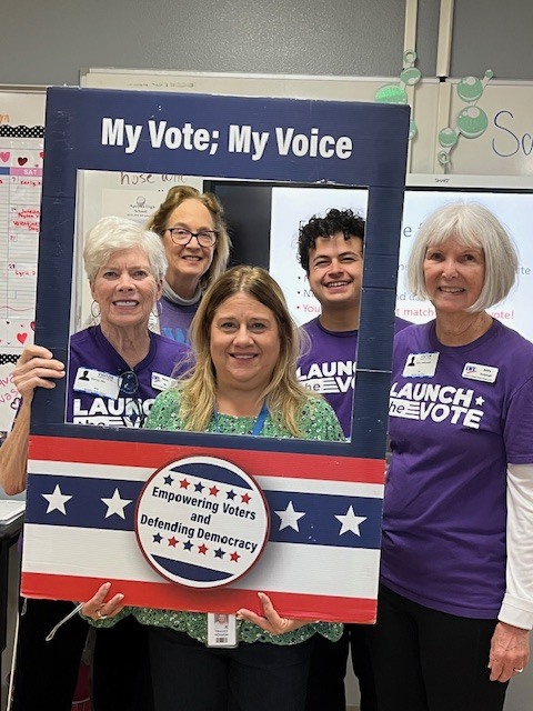 | | | | League Superheroes are already out in the high schools educating and registering the next greatest generation of voters for 2026! At Apopka HS left: Nancy Nix, Caroline Blydenburgh, teacher/SGA sponsor Ms. Hough, Bobby Sena, Betty Saulpaugh; right: Second shift: Jeannie Briggs, Mary Ann Coffey, Melinda Wright, Bobby Sena | | Many of you know that this past year we moved to a new membership database through the LWVUS. We learned in December that some of our members may have thought that their membership was up to date but this was actually NOT the case. If you have not renewed recently, please visit the LWVUS portal HERE to confirm your membership is still active. Thank you for your support! We could not do this without you!