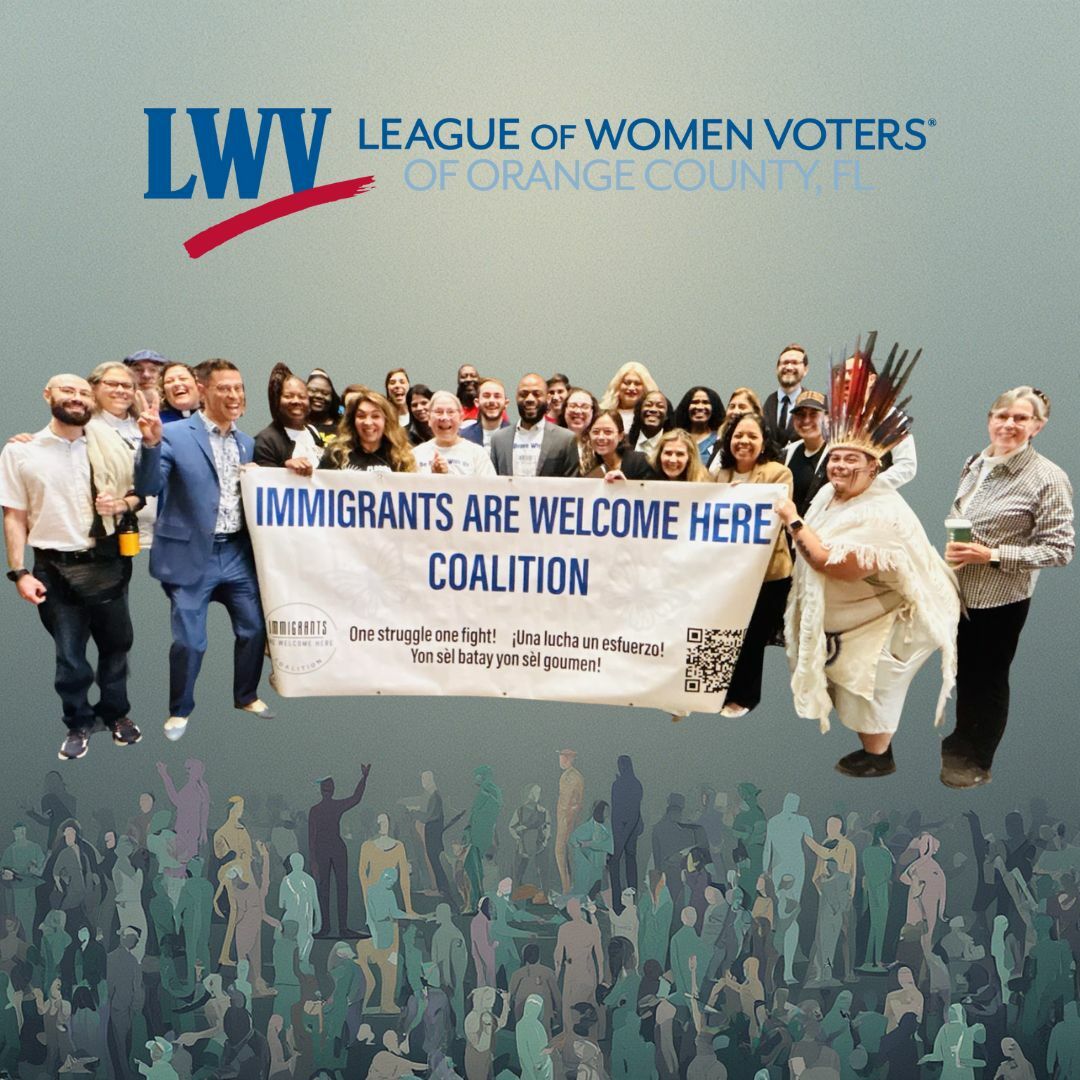 Setting politics aside, we unite in this Community Vote to affirm a clear principle: NO ICE IN OUR STREETS Masked officers, secret policing, and fear-based immigration enforcement undermine trust and make us all less safe. Use this form to contact your legislator and urge them to protect due process and keep ICE out of our neighborhoods. Join thousands across our communities by sending the email in the link above to your legislators and declaring: no ICE in our streets. |  | | Five members of the League of Women Voters spoke to the Orange County Board of County Commissioners asking them to file a lawsuit to clarify the county's requirements with respect to ICE contracts. The members of the Immigration Committee are pictured in the picture above: Paul Heroux, Jill Heroux, Linda Coffin, Patty Hurd, and Virginia Meany. Also in attendance was committee member Toni Crabtree as observer of the proceedings. Read ab accompanying article from Central Florida Media is HERE. | | |