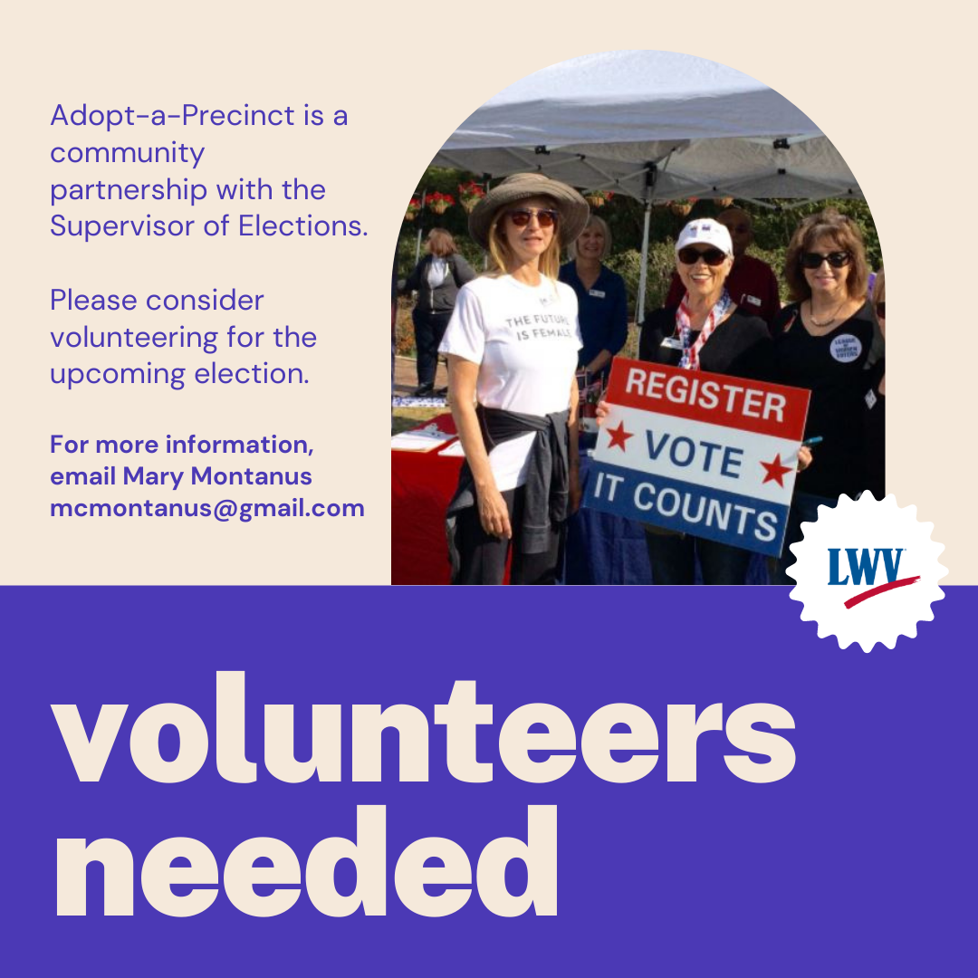 If you have any questions please reach out to Katie Sanders, our Operations Manager at operationsmanager@lwvoc.org.