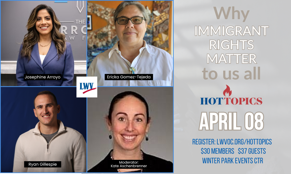 NEXT WEEK--The League of Women Voters of Orange County will host an April 8 Hot Topics discussion — “Why Immigrant Rights Matter to Us All” — that focuses on threats to immigrants’ due process and what voters can do to counter efforts that weaken everyone’s constitutional rights.